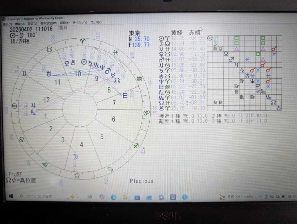 ここで忘れてはいけないのが、満月というのは、月の反対側で別の意見をいう太陽がいます。その太陽も、まずシンプルに読みます。